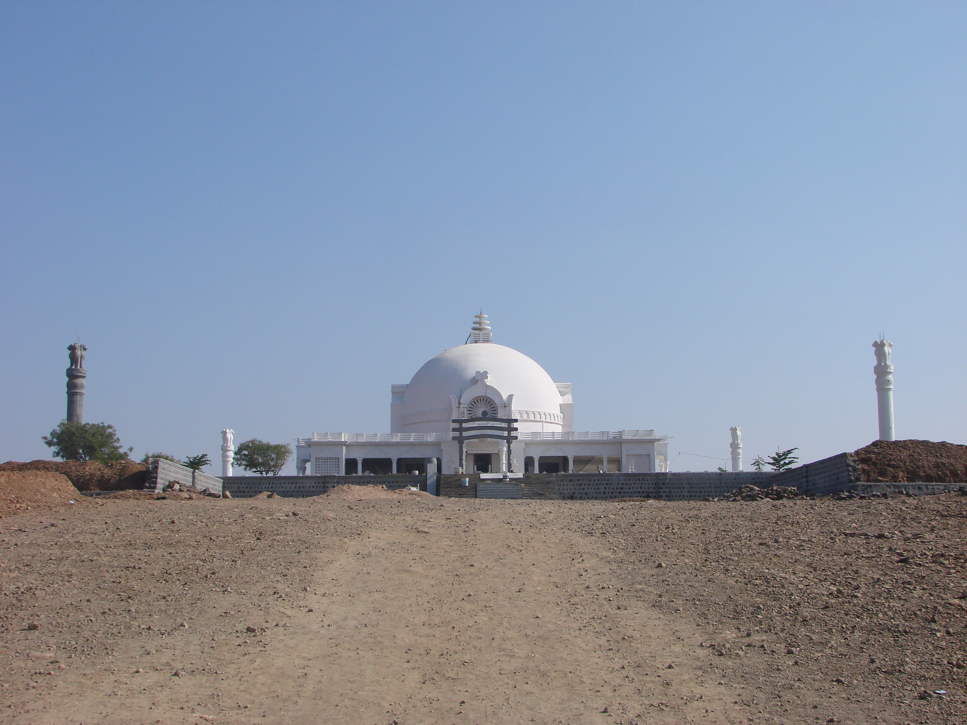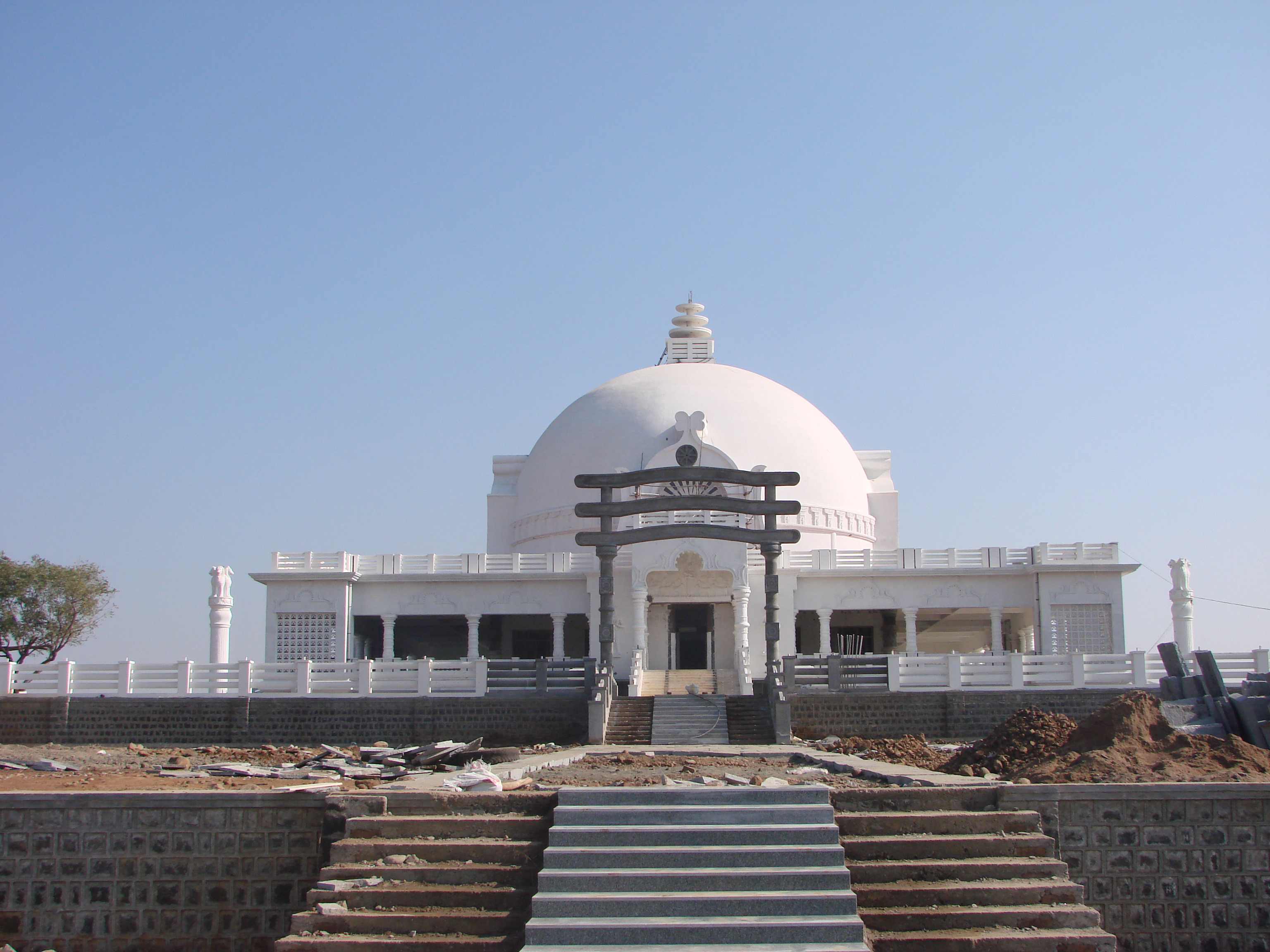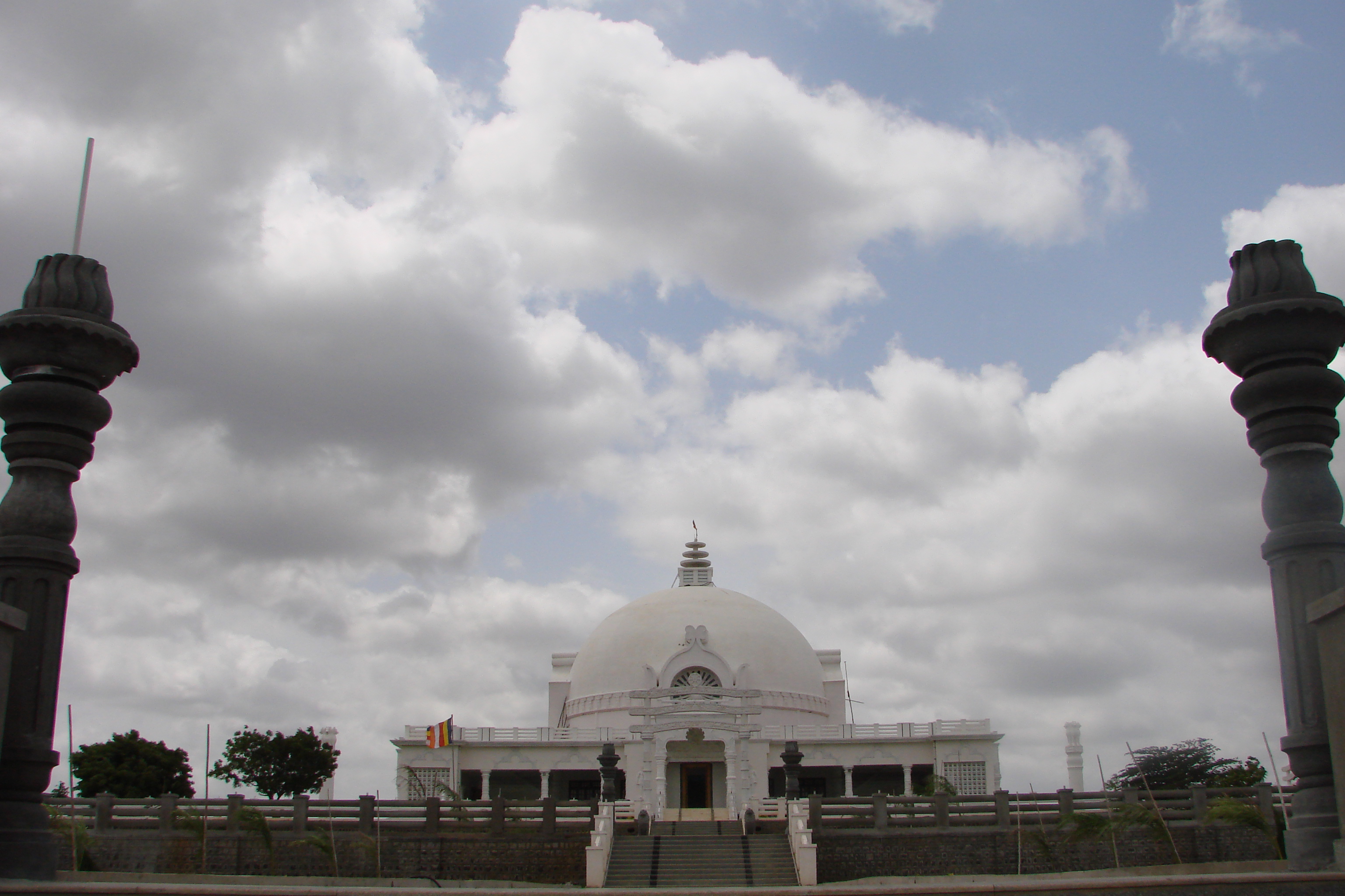 The main dome is 70 feet wide in diameter and 59 feet high and is tiled with marble. The dome has a spire made of panchaloha with a kalasha on top of it also made of panchaloha. The kalasha was installed during the visit of Her Excellency The President of India, Smt. Prathibha Patil and His Holiness The Dalai Lama to the Buddha Vihar in January, 2009.